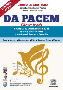 Nous sommes heureux de vous accueillir le SAMEDI 13 JUIN 2026 À 19H pour notre prochain concert au TEMPLE PROTESTANT 2, rue Joseph Fourier à Grenoble.